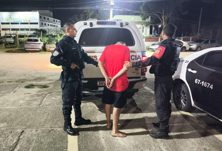 Por volta das 23h, os agentes se deslocaram até a Avenida Pôr do Sol, onde conseguiram reconhecer e abordar o suspeito. Contra ele, havia um mandado de prisão em aberto expedido pela Justiça.